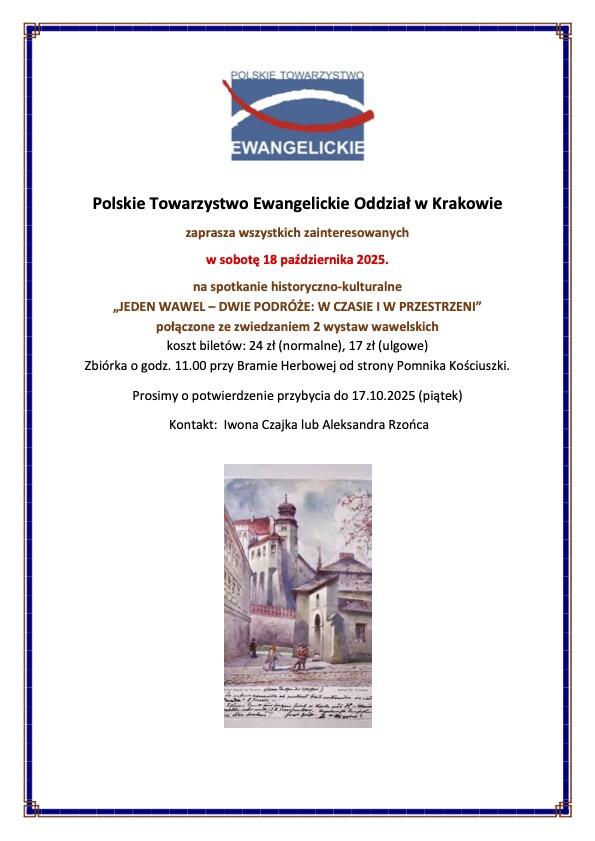 Spotkanie „JEDEN WAWEL – DWIE PODRÓŻE: W CZASIE I W PRZESTRZENI” połączone ze zwiedzaniem dwóch wystaw wawelskich odbędzie się w sobotę 18 października 2025.