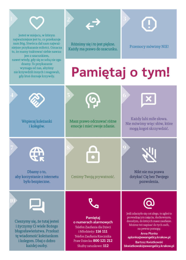 `Poniżej przekazujemy list Biskupa Kościoła. Dodajemy także grafikę, którą przygotowaliśmy w ramach wdrożenia w naszej Parafii Standardów Ochrony Małoletnich. Autorką grafiki jest Pani Lidia Pilch.