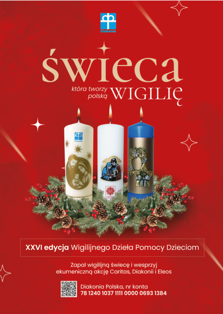 Kupując świecę wspierasz działania charytatywne prowadzone przez ewangelicką Diakonię, katolicki Caritas i prawosławny Eleos.