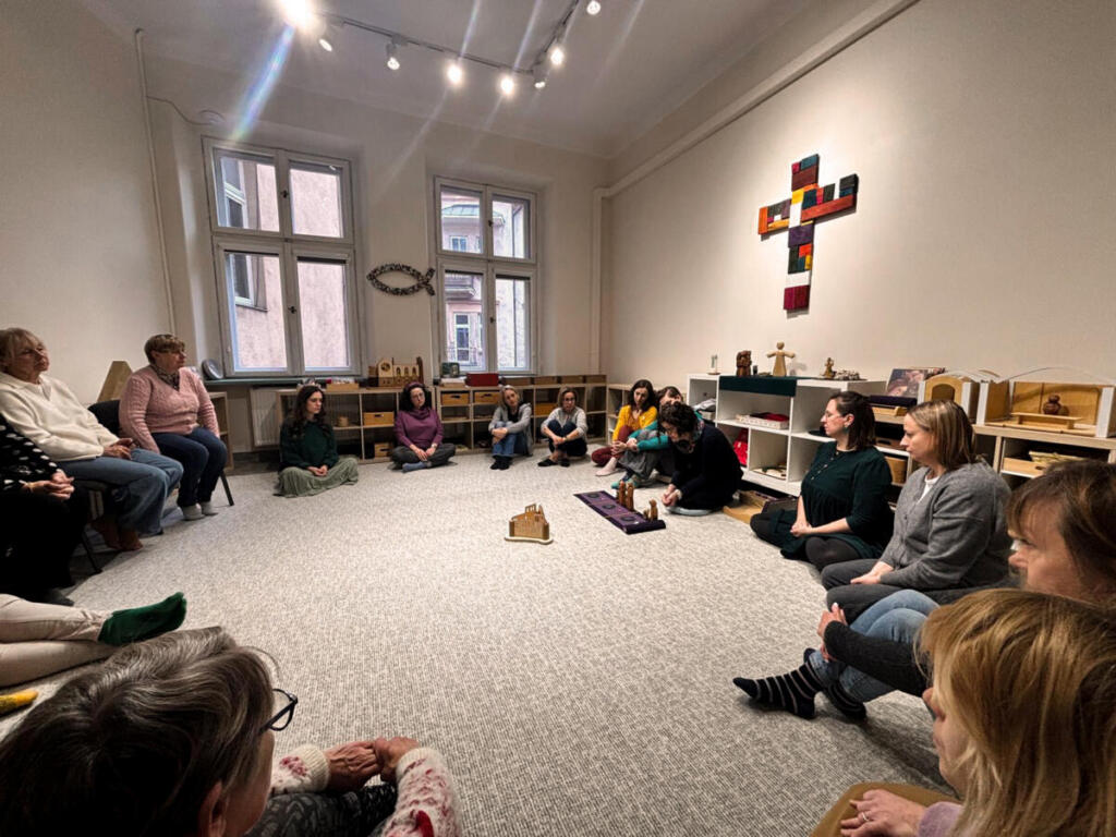 Poprzez wspólne haftowanie adwentowych wzorów, uczestnicy mogli dotknąć głębszych znaczeń i symboliki kolejnych niedziel Adwentu, w które wprowadziła nas opowieść Godly Play.