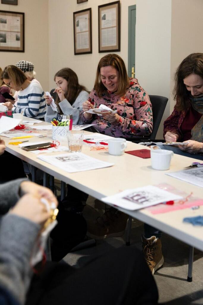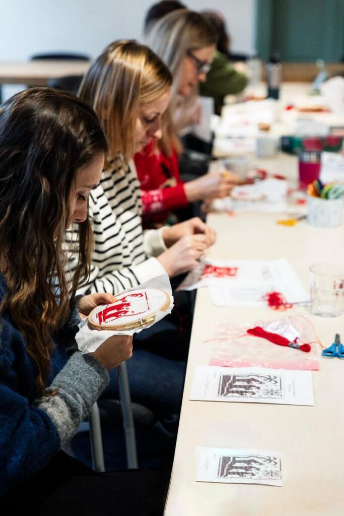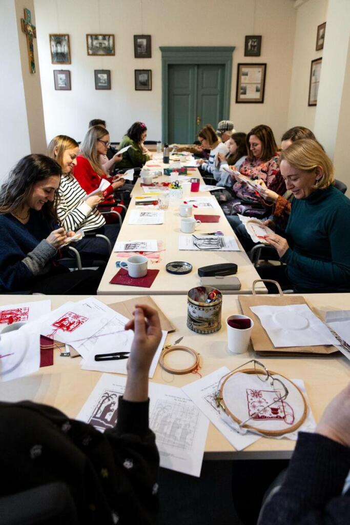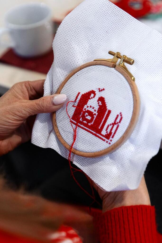 Przy wspólnym stole wróciliśmy do haftowania — dzieliliśmy się doświadczeniami i podziwialiśmy już wymalowane nicią obrazy, które dla wielu stały się przestrzenią wyciszenia i uważności. Choć było to ostatnie rekolekcyjne spotkanie w tym roku, to adwentowe i świąteczne motywy pozostaną z nami aż do 6 stycznia.