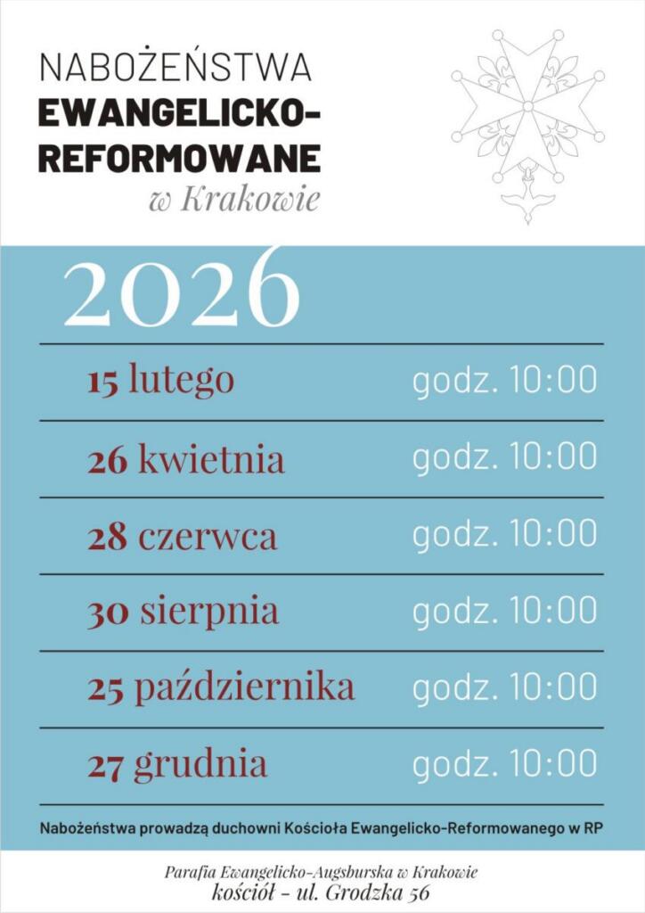 Nabożeństwa ewangelicko-reformowane w Krakowie – 2026 r.