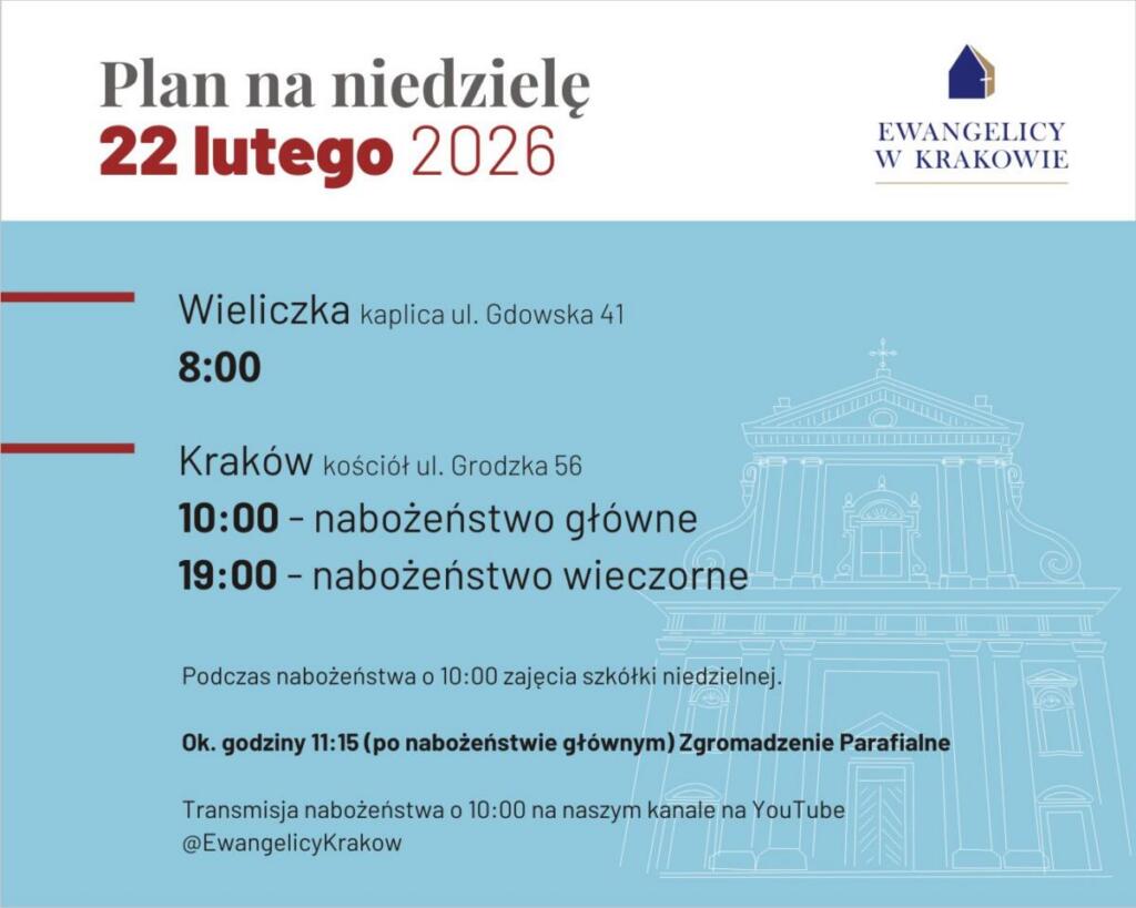 Zapraszamy na nabożeństwa w niedzielę 15 lutego: