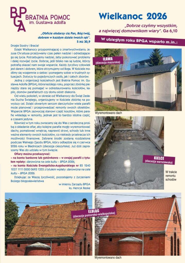 Ruszyła doroczna zbiórka datków na fundusz Bratniej Pomocy im. Gustawa Adolfa. Zebrane środki przeznaczane są na wsparcie renowacji kościołów, kaplic i innych budynków w parafiach ewangelickich, które nie są w stanie samodzielnie sfinansować niezbędnych remontów.