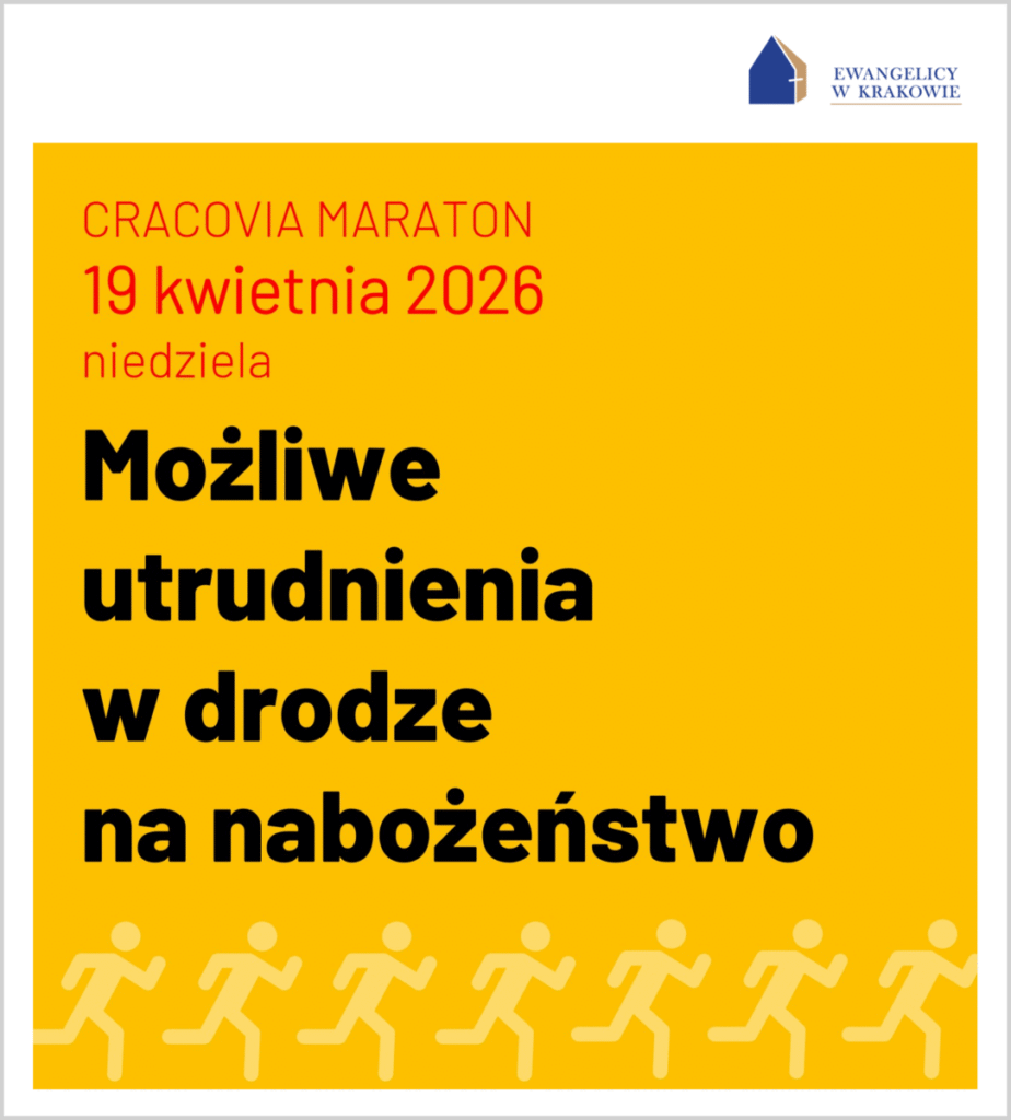 Tradycyjnie trasa biegu przebiegać będzie m.in. ulicą Grodzką, a więc przy naszym kościele. Z tego względu, jak również z powodu zmian w organizacji ruchu w mieście oraz w funkcjonowaniu komunikacji miejskiej, dotarcie na niedzielne nabożeństwa może być utrudnione. Zachęcamy do uwzględnienia tego w planach swoich „podróży’ do kościoła na Grodzką.