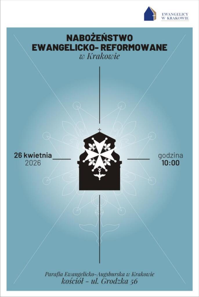 Najbliższa niedziela (26 kwietnia 2026) to w naszej Parafii czas nabożeństwa w liturgii ewangelicko-reformowanej. Zapraszamy na Grodzką na godzinę 10:00.