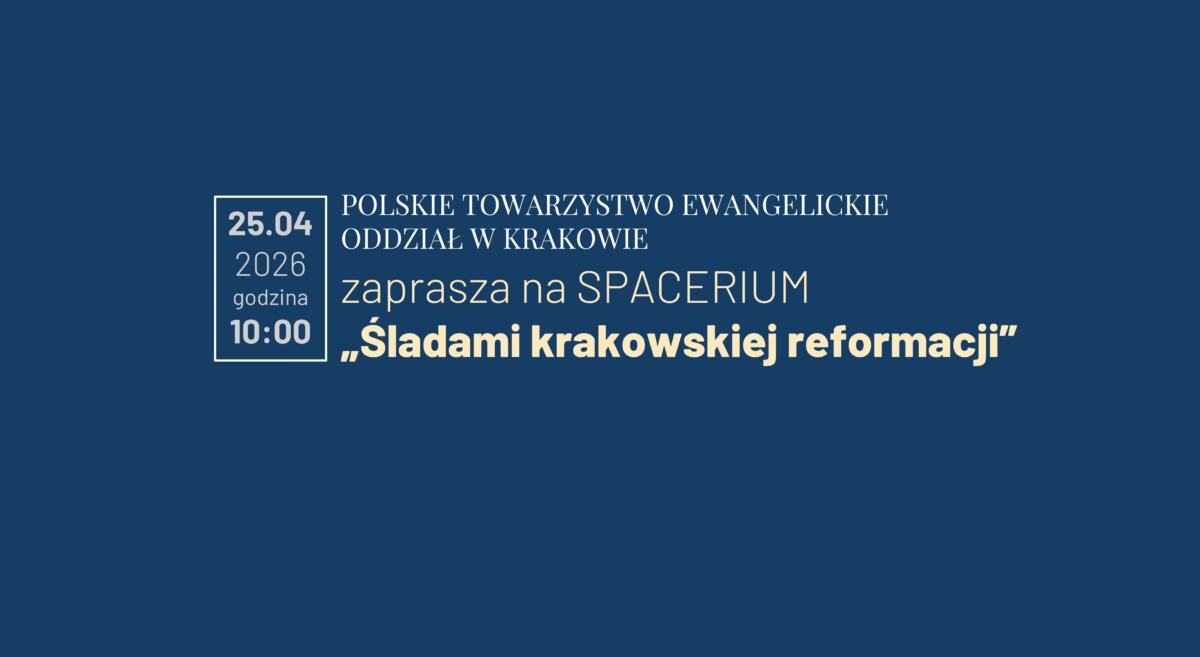 Polskie Towarzystwo Ewangelickie Oddział w Krakowie zaprasza wszystkich zainteresowanych w sobotę 25 kwietnia 2026 na SPACERIUM „ŚLADAMI KRAKOWSKIEJ REFORMACJI”. Zbiórka o godz. 10.00 na Placu Ojca Adama Studzińskiego (pod Wawelem,…