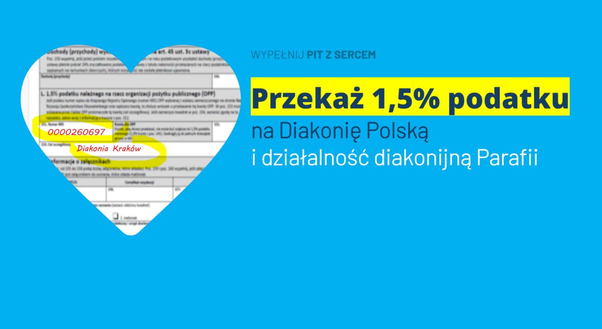 Trwa okres rocznych rozliczeń podatkowych, a to okazja do wsparcia organizacji pożytku publicznego. Zachęcamy więc do przekazania 1,5% swojego podatku rzecz Diakonii Polskiej. Równocześnie zachęcamy do wskazania w formularzu rozliczeniowym…
